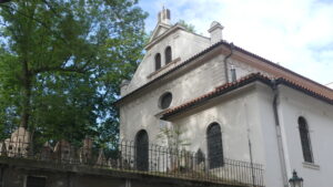 Fundada en 1479 y situada junto al Viejo Cementerio Judío, tiene inscritos en sus muros los nombres de 77.297 judíos checos asesinados por los nazis. También expone dibujos realizados por niños internados en el campo de concentración de Terezín.
